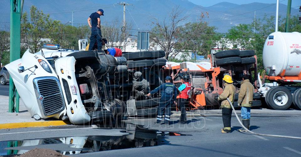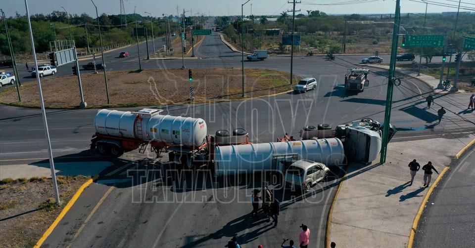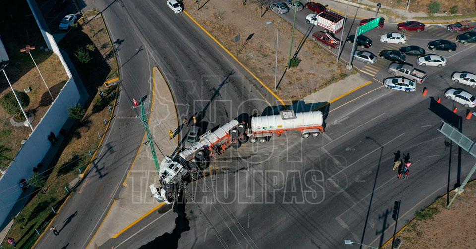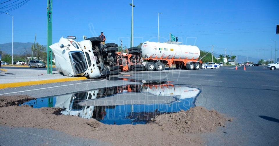 La pipa quedó volcada sobre la vialidad y estuvo a punto de aplastar un vehículo