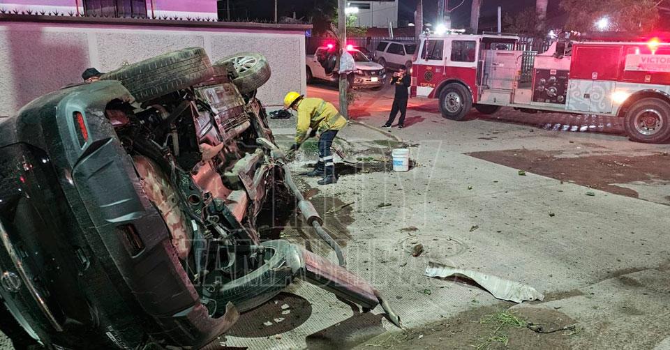La camioneta Nissan Rouge terminó prácticamente convertida en chatarra tras el accidente registrado en la Calzada General Luis Caballero y Avenida Del Maestro en Victoria
