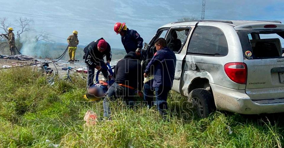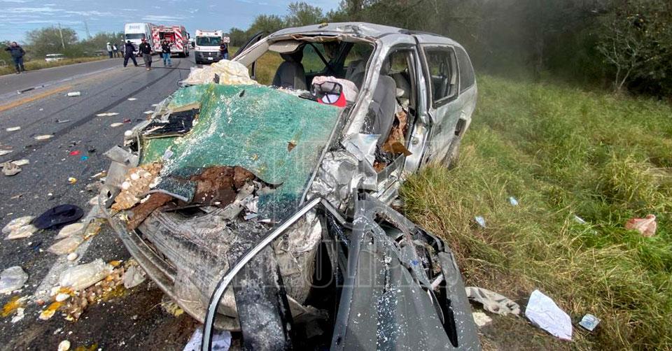 Una camioneta involucrada en el percance, quedó completamente destrozada