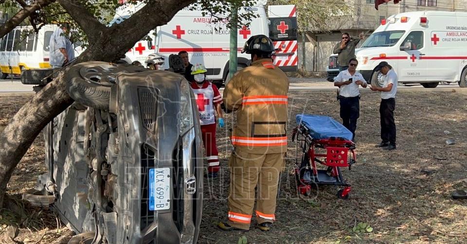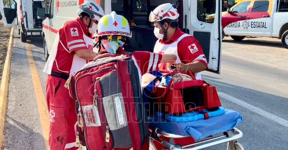 Paramédicos de Cruz Roja dando atención prehospitalaria al lesionado