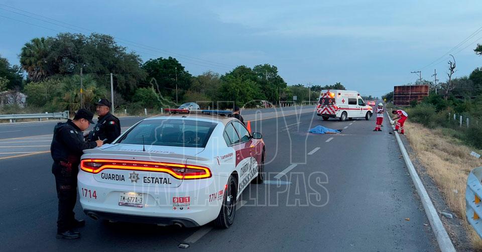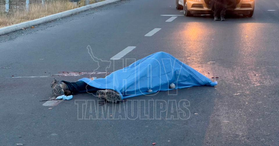 Elementos de la Guardia Nacional en el lugar de los hechos, a metros de ellos se encuentra el cuerpo sin vida del hombre que fue atropellado