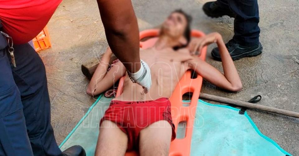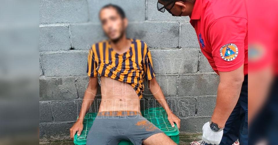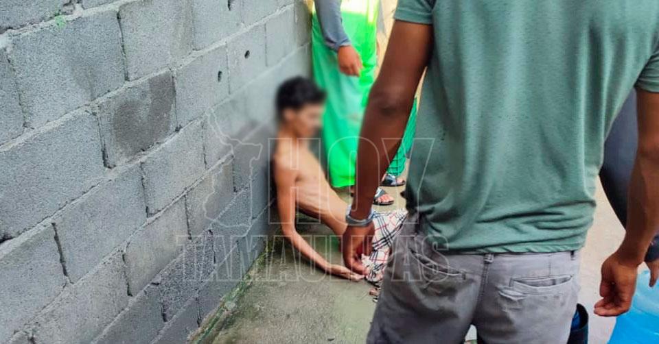 Náufrago cubano visiblemente deshidratado recargado sobre una pared en espera de recibir ayuda por parte de Protección Civil de San Fernando