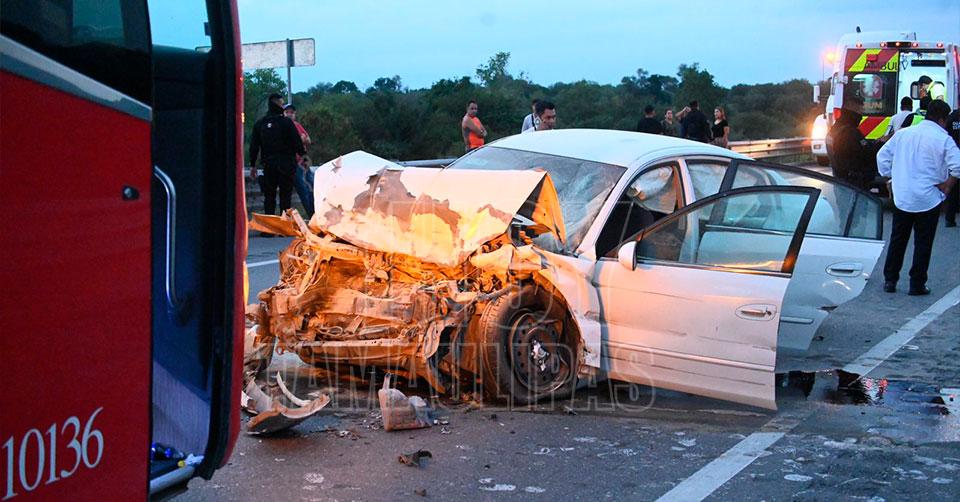 El vehículo particular sufrió graves daños en su parte frontal