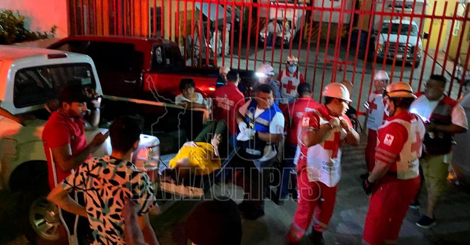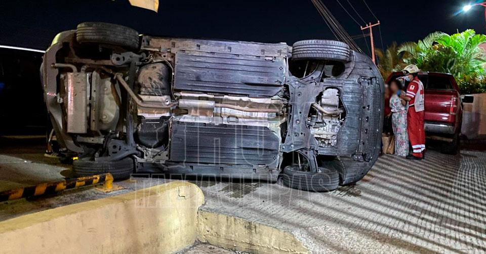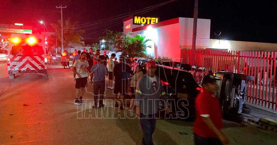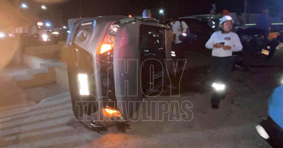 Paramédicos auxiliando a una persona que resultó lesionada luego de que su unidad volcó en Tampico