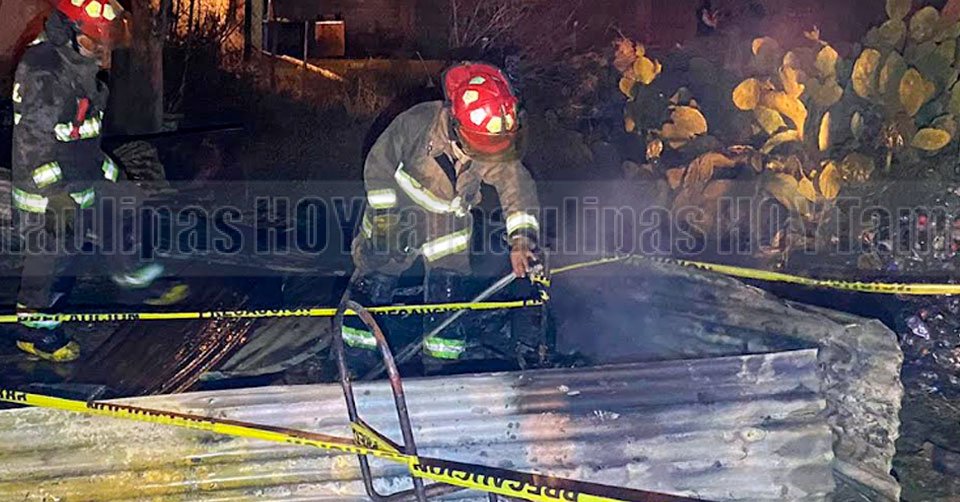 Personal del Cuerpo de Bomberos checando entre los escombros tras haber sofocado las llamas en el incendio de una vivienda en la colonia Bertha del Avellano en Nuevo Laredo