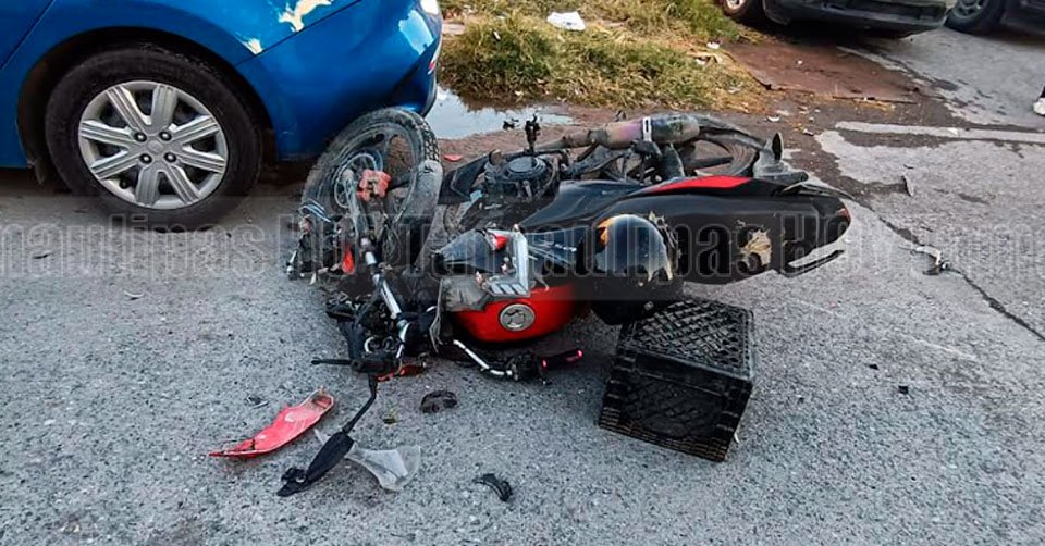 La motocicleta del joven lesionado terminó destruida tras el accidente registrado en calles de la colonia Villas de San Miguel en Nuevo Laredo