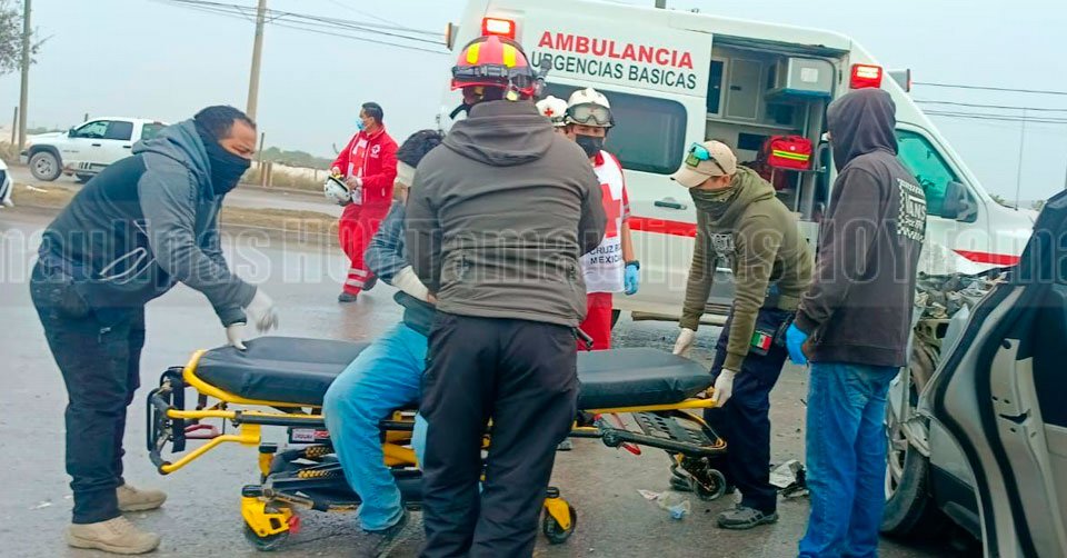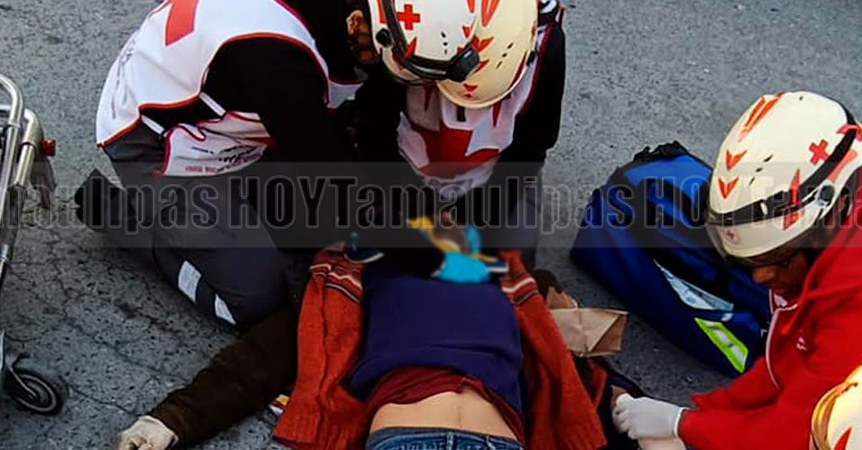 Lesionado es subido a una camilla para ser trasladado a un centro hospitalario en Matamoros