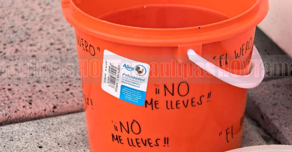 Contenedor para agua de “El Güero” colocado en el exterior de la Torre Bicentenario en Ciudad Victoria