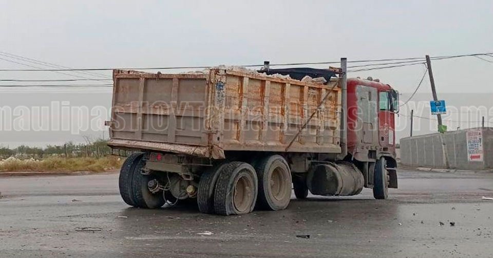 Camión Freightliner luego de chocar en Matamoros