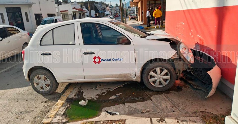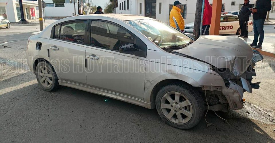 Carro dañado luego de chocar en Ciudad Victoria