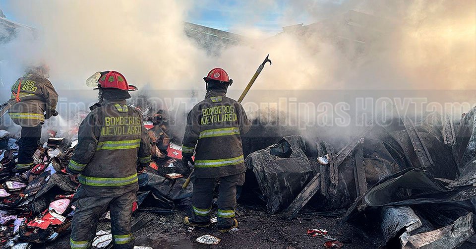 Bomberos combaten el incendio de dos cajas de tráiler de una línea de transportes en Nuevo Laredo