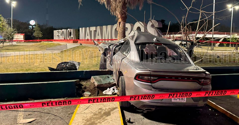 Carro impactado luego de chocar en Matamoros