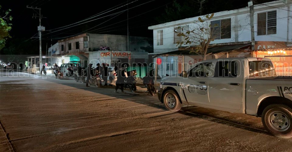 Elementos de la Guardia Estatal en el lugar donde fue robada una camioneta en Matamoros
