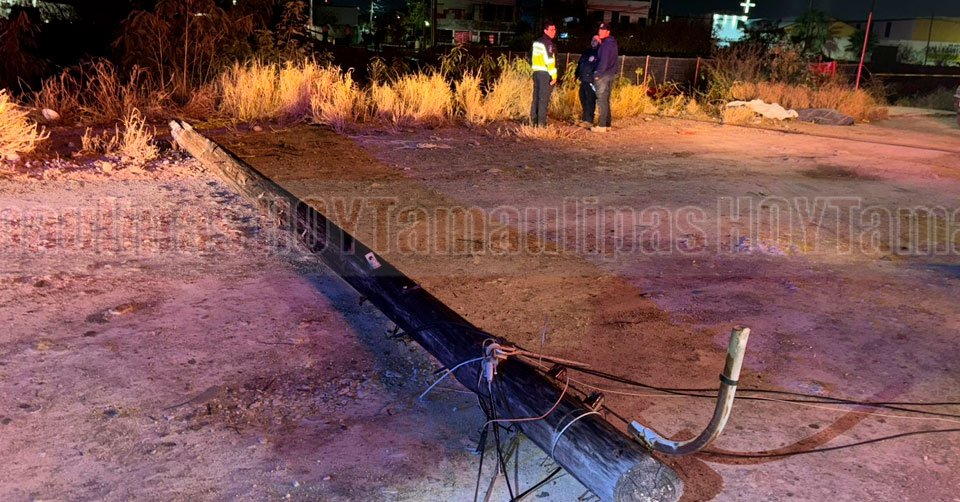 Poste dañado luego de que una persona chocara en Reynosa