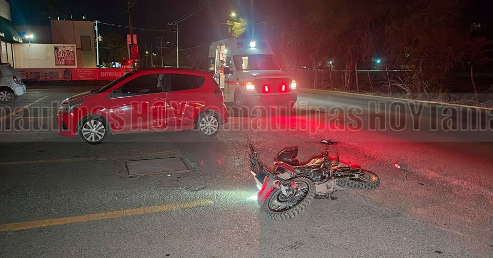 Auto y motocicleta involucrados en un choque en Ciudad Victoria