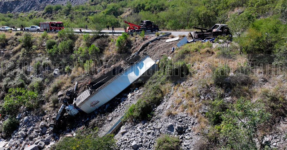 Tráiler volcado en la carretera a Rumbo Nuevo