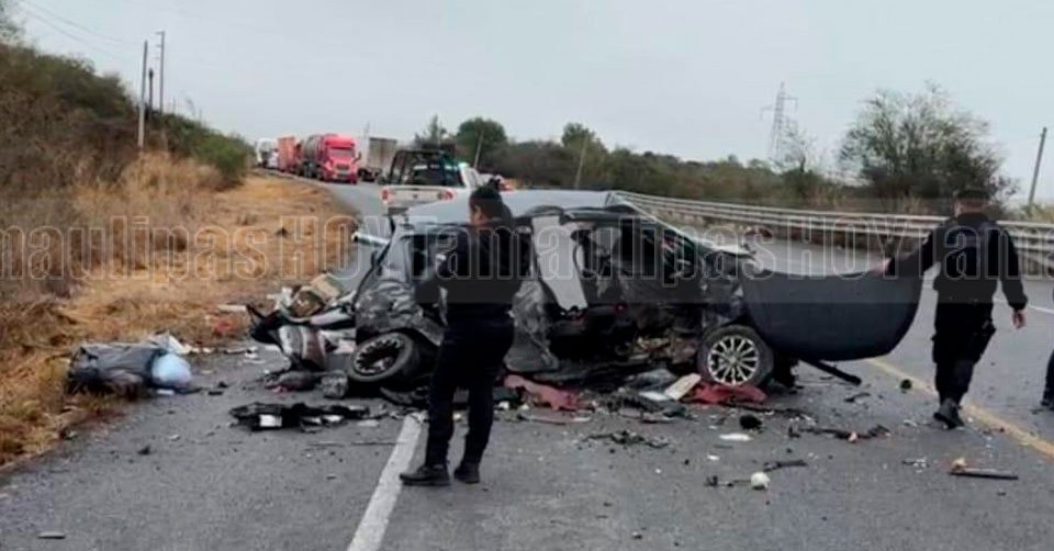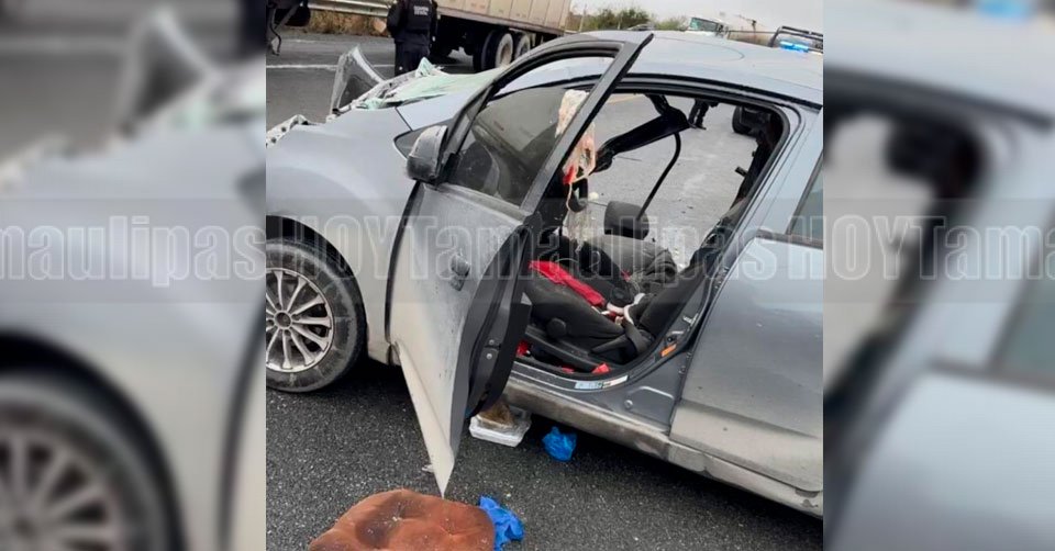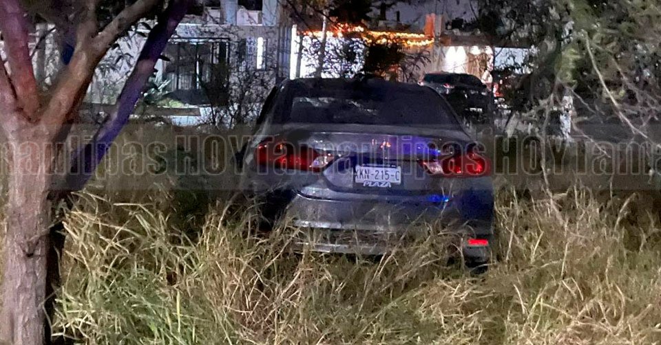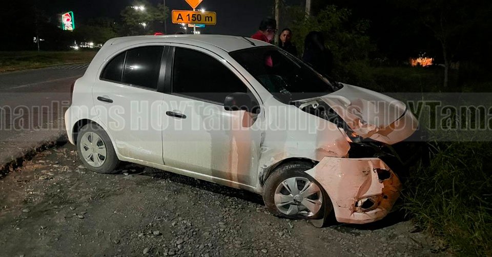 Auto con daños en la parte frontal luego de chocar en Ciudad Victoria