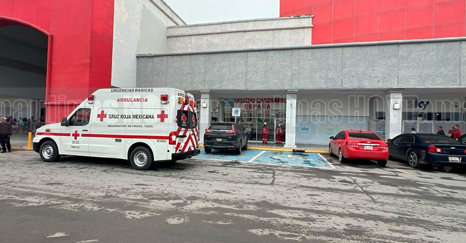Paramédicos llegando al Centro Cambiario donde fue herido el propietario en Reynosa