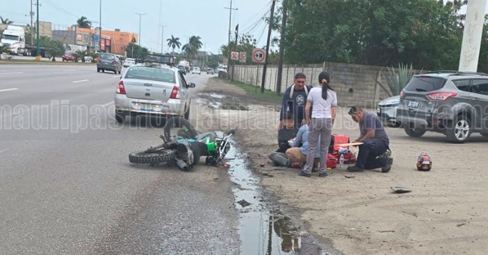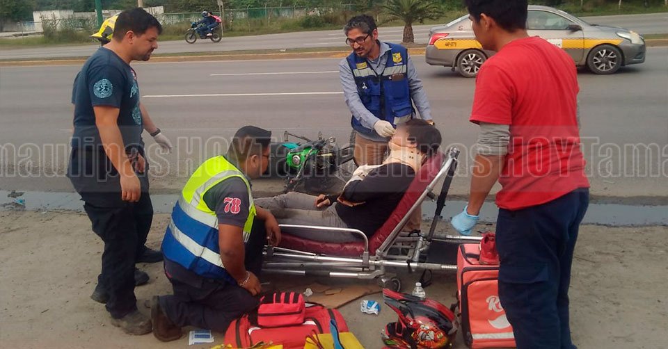 Motociclista lesionado al impactarse contra una camioneta en Altamira