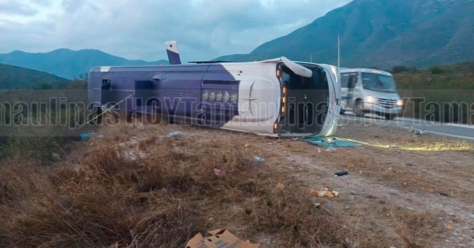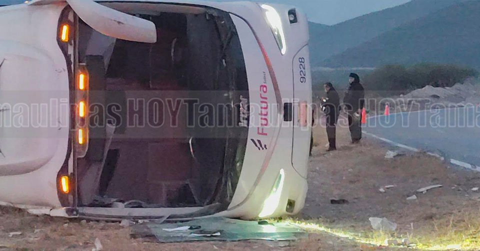 Autobús de la línea Futura volcado en la carretera Victoria-Tula