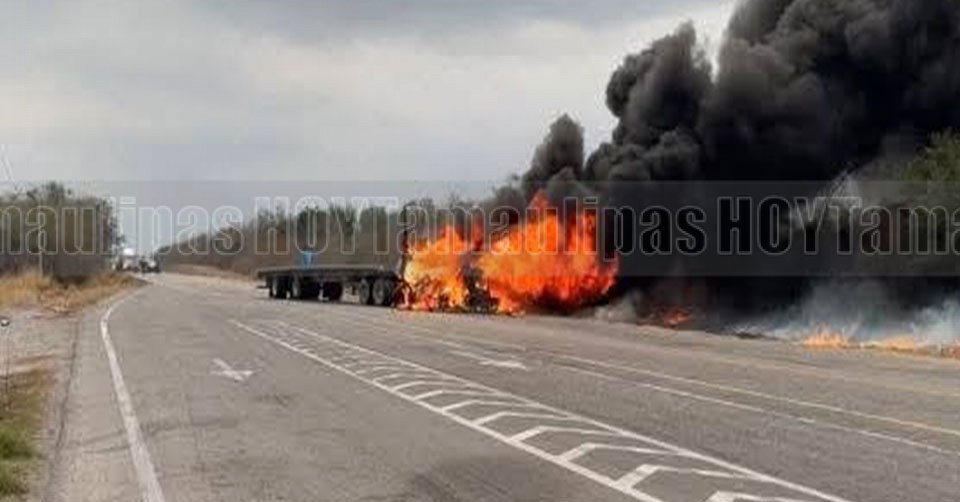 Camión en llamas en la carretera Victoria-Monterrey