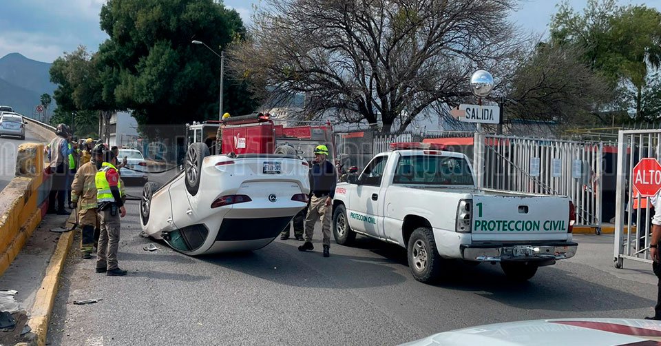 Automóvil volcado sobre el Bulevar Adolfo López Mateos, en “La Joroba”
