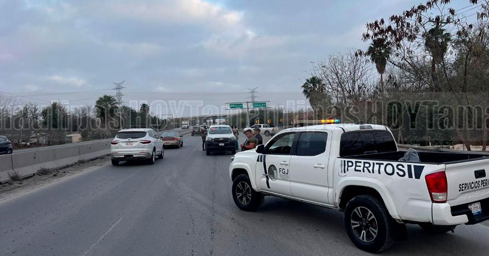 Autoridades de la Fiscalía General de Justicia de Tamaulipas, acompañados por elementos de la Guardia Estatal en el lugar donde ocurrio una SDR en la carretera a Río Bravo