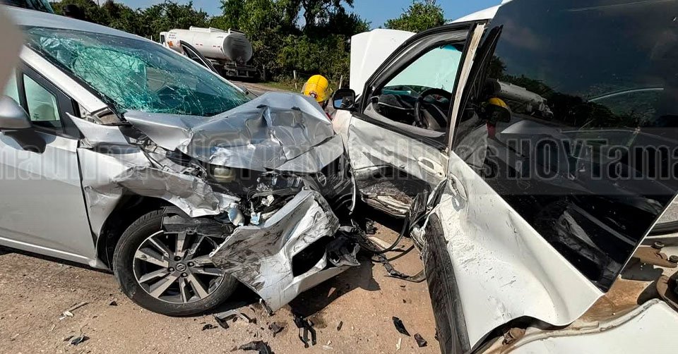 Camioneta Chrysler color blanco impactada por una automóvil sobre el Corredor Urbano "Luis Donaldo Colosio" en Altamira, quedando una mujer prensada