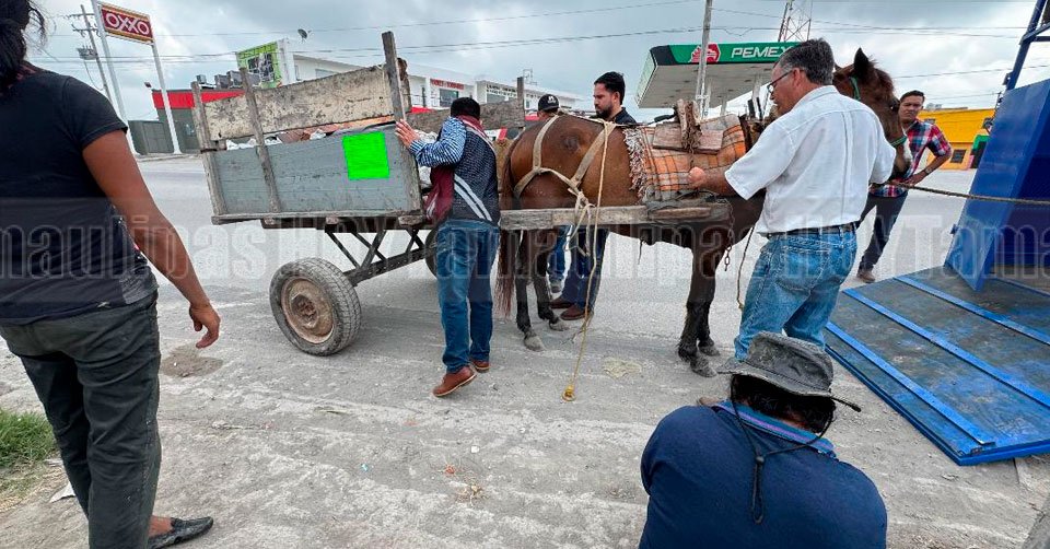 Carretoneros a los que se les fue decomisado un caballo en Matamoros