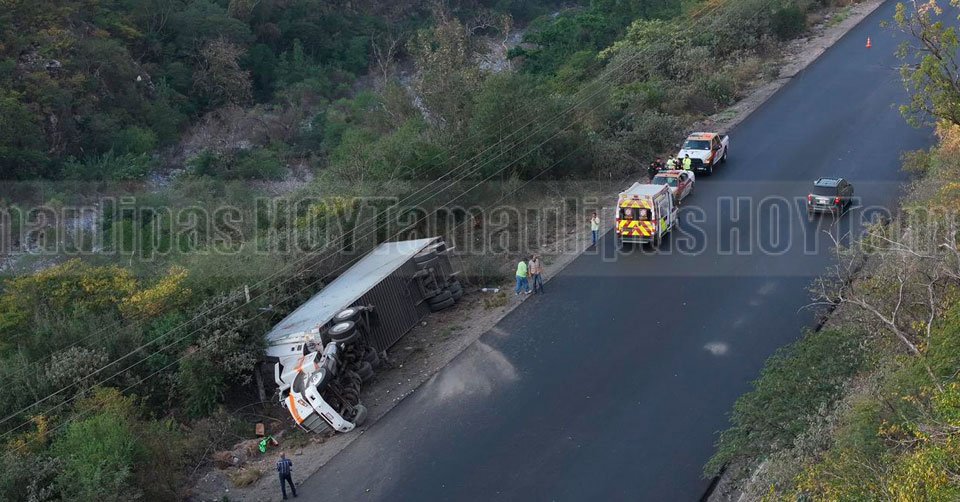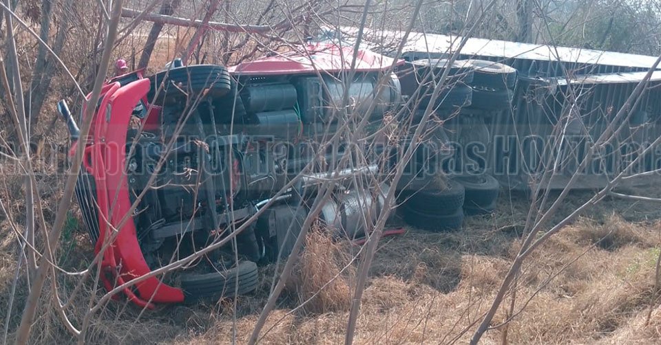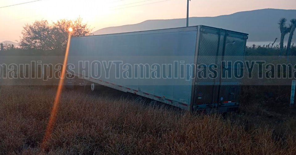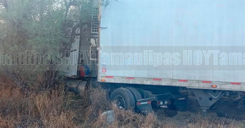 Trailer queda entre matorrales luego de volcar en libramiento de San Fernando