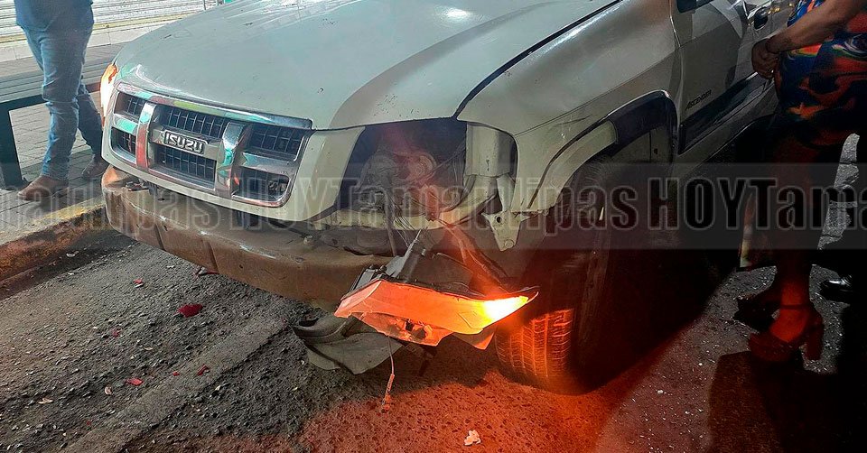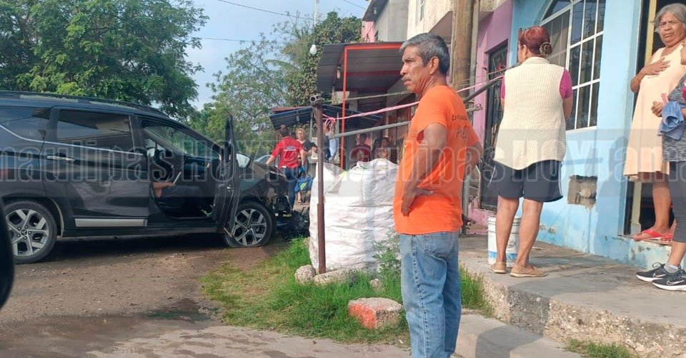 La camioneta Mitsubishi color negra impactada contra la fachada de un domicilio en Tampico