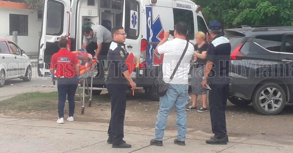 Paramédicos atendiendo a una persona luego de chocar en Tampico