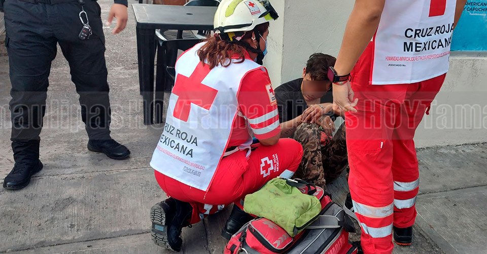 Ladrón sentado en el piso recibe atención por parte de paramédicos de la Cruz Roja en Tampico