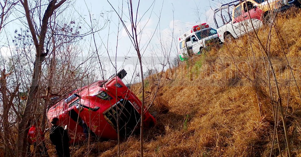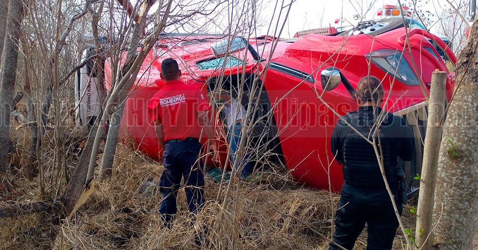 La pesada unidad quedó entre matorrales luego de volcar en libramiento de San Fernando