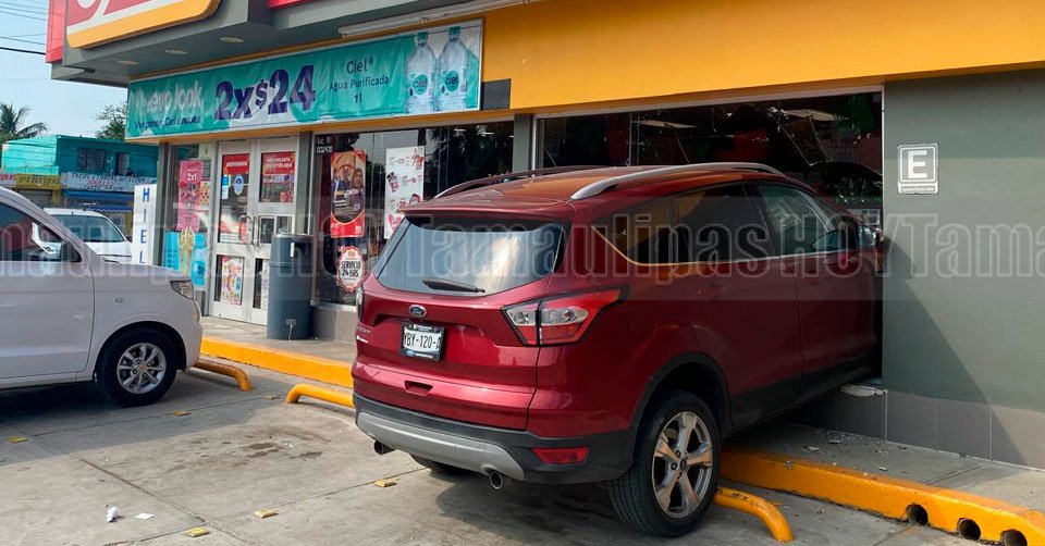 La parte frontal de una camioneta quedó dentro de la tienda en Tampico