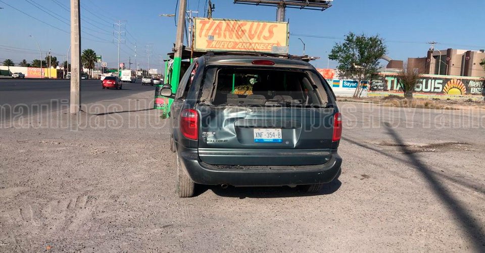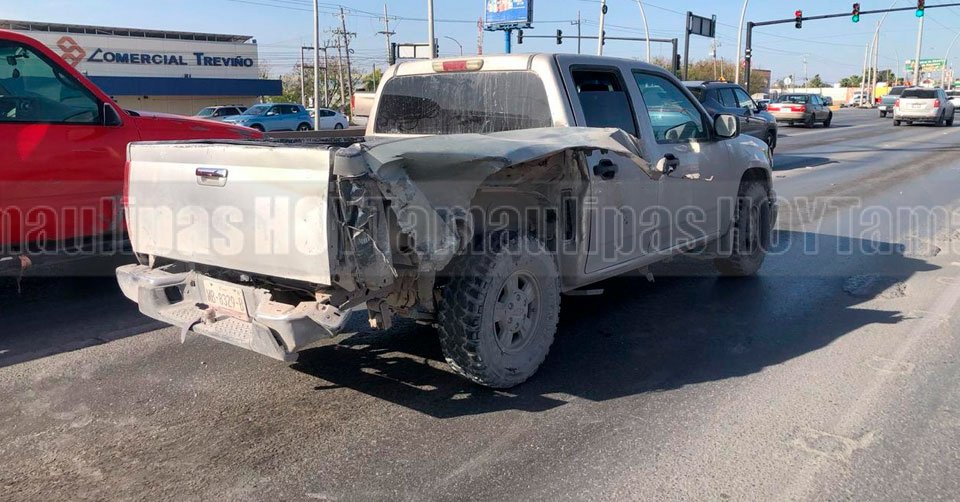 Camioneta con daños en la parte trasera luego de ser chocada en Reynosa