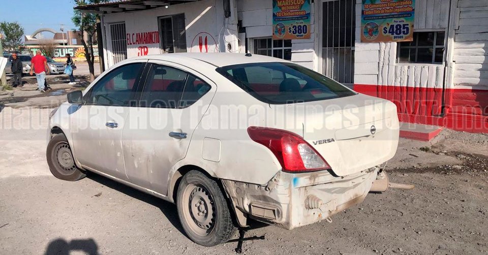Automóvil con severos daños en la parte trasera luego de ser chocado en Reynosa