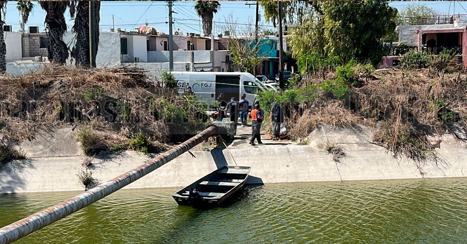 Curiosos observando como rescatan el cuerpo de una mujer en un canal de Reynosa