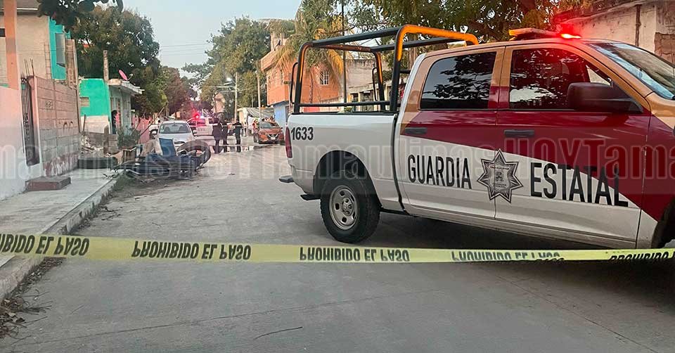 Patrullas en el lugar donde murió un integrante del llamado Escuadrón de la Muerte en Tampico