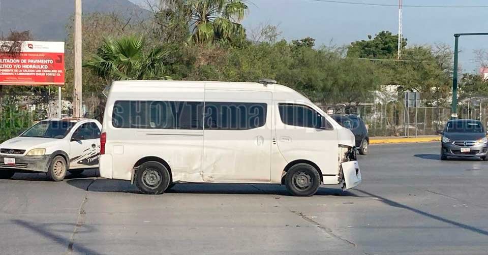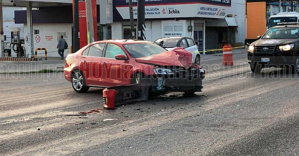 Auto son severos daños en la parte frontal luego de chocar en Tampico