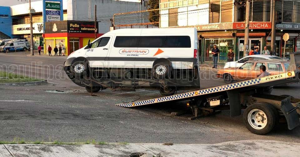 Camioneta de transporte de personal siendo subida a una grúa en Tampico