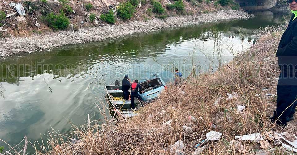 Camioneta Chrysler Town Country que cayó en el canal Guillermo Rodhe en Reynosa