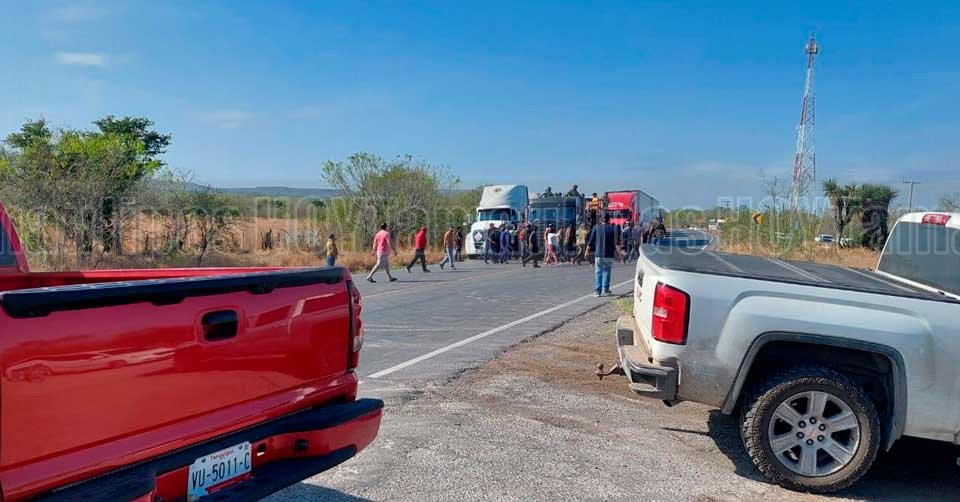 Personas cerrando la circulación de la Carretera Federal 101 en San Fernando