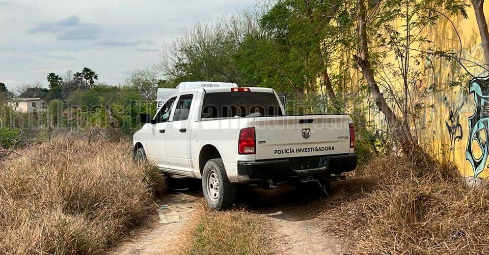 Unidades de la Fiscalía en el lugar donde fue localizado un cadáver en Reynosa