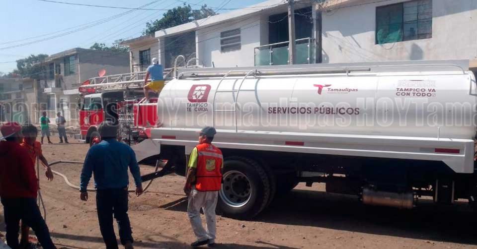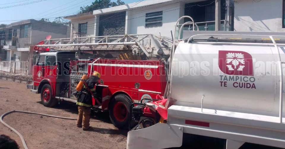 Elementos de auxilio llegando al lugar del incendio en Tampico