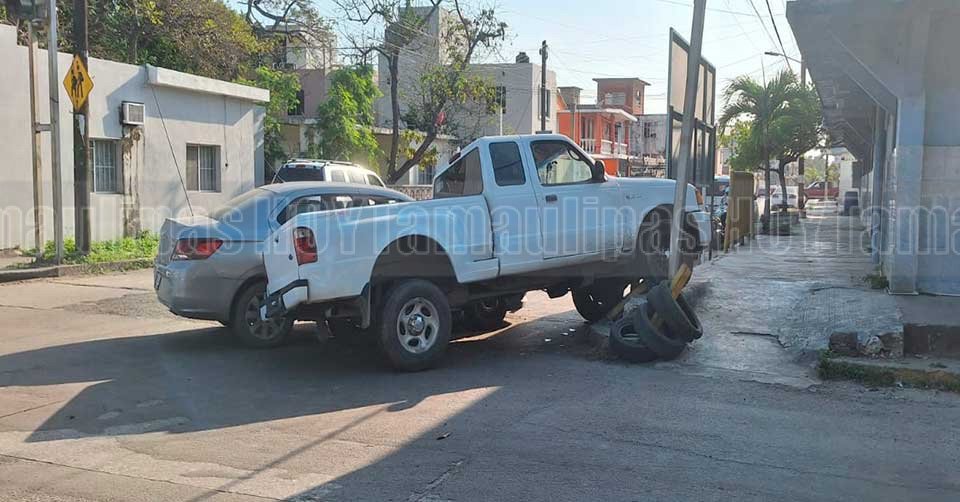 Camioneta dañada luego de chocar en Ciudad Victoria