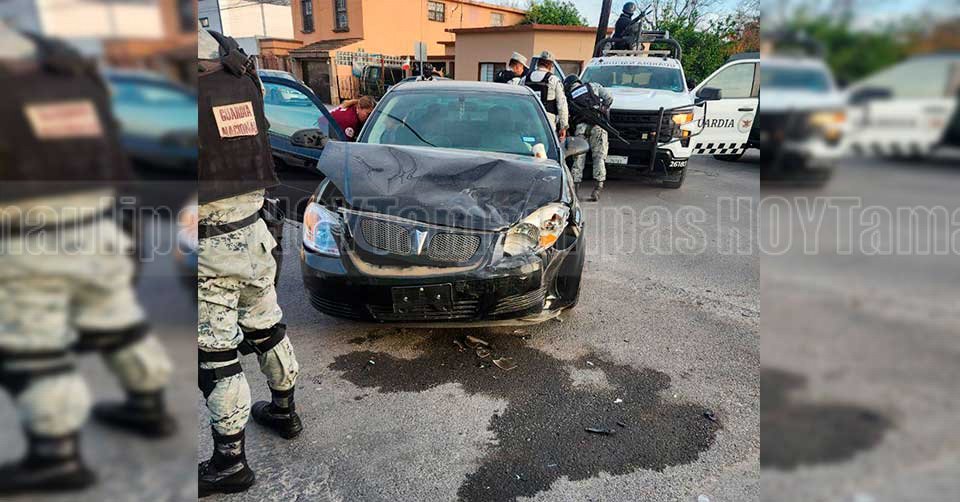 Automóvil que participó en el accidente con la Guardia Nacional en Nuevo Laredo