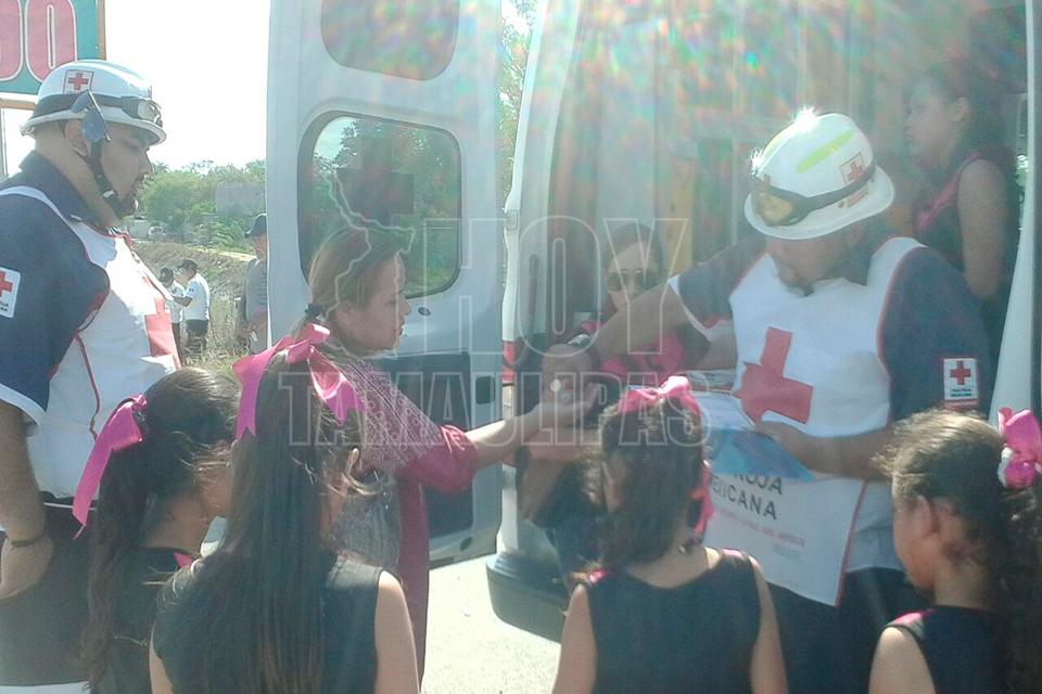 Al menos cinco alumnas de una Primaria de Reynosa resultaron lesionadas, cuando la unidad en la que viajaban volcó