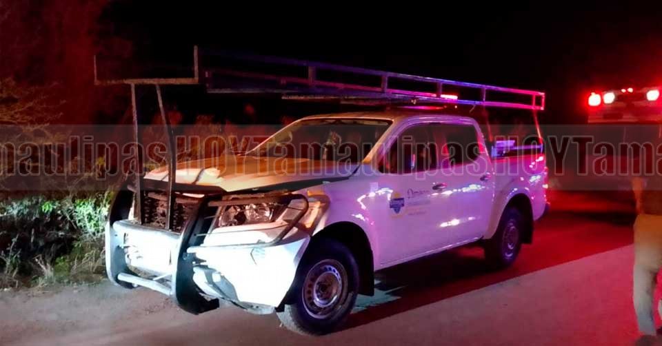 Camioneta con daños en la parte frontal luego de atropellar a una persona en Reynosa