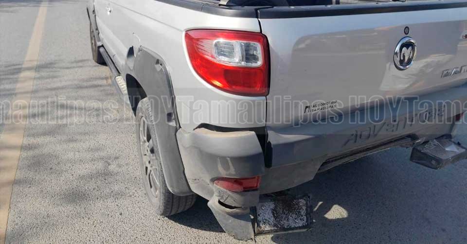 Camioneta con daños en la parte trasera luego de ser chocada en Ciudad Victoria